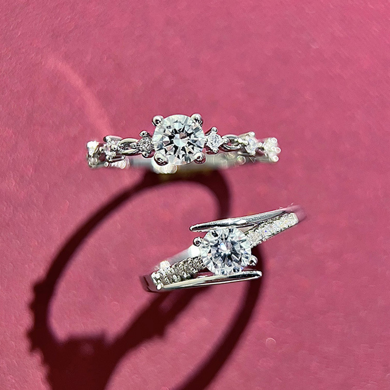 Popular Live Broadcast Supply Imitation Moissanite 50-Point Ring Simple Accessible Luxury Eight Hearts and Eight Arrows Proposal Diamond Ring Manufacturer Wholesale