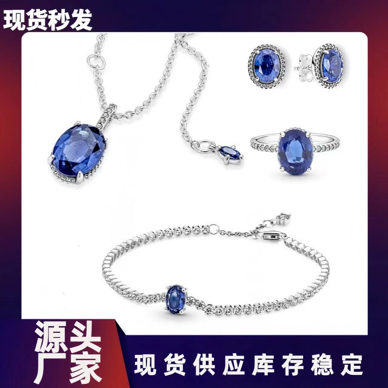 Panjia Blue Wish Story Necklace White Copper Sapphire Feminine Versatile Clavicle Chain Set Factory Direct Sales Pendant
