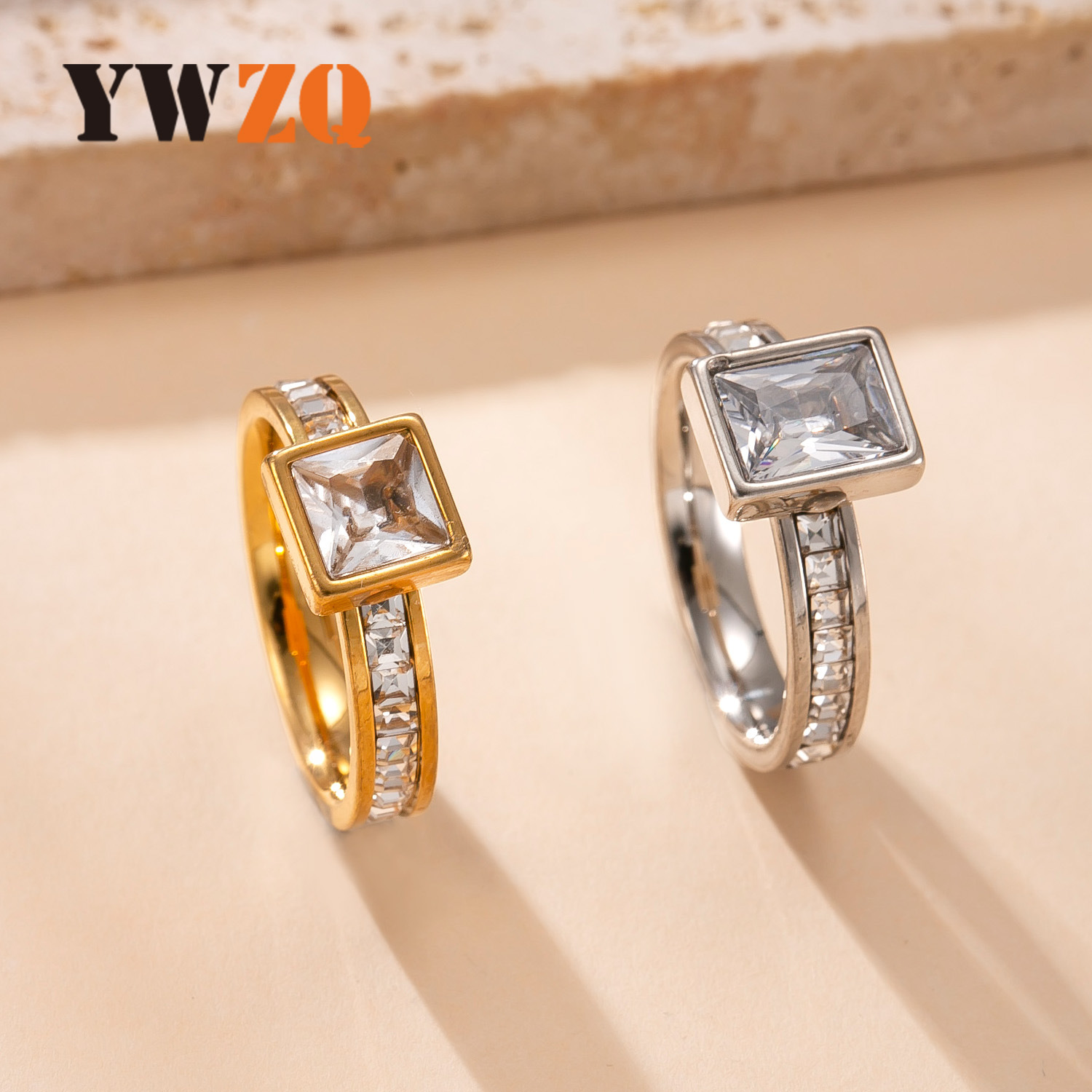 Cross-Border New Stainless Steel Jewelry Korean Simple Couple Ring Welded Brand Inlaid with Square Diamond Titanium Steel Ring Factory Direct Sale