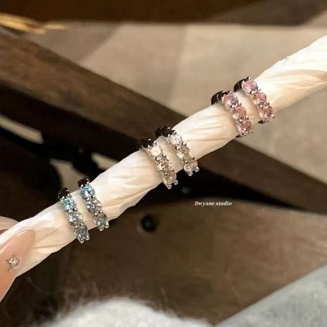 Simple All-match Double Ear Holes Colorful Zircon Ear Ring Super Flash Delicate Simple Ring Earrings Niche Ring Earrings Ear Stud Ear Buckle