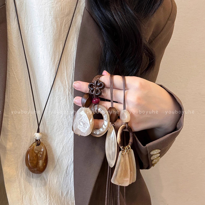 Autumn and Winter Retro Maillard Coffee Color Smudged Long Necklace Women's Accessible Luxury Niche High-End Sweater Sweatshirt Chain