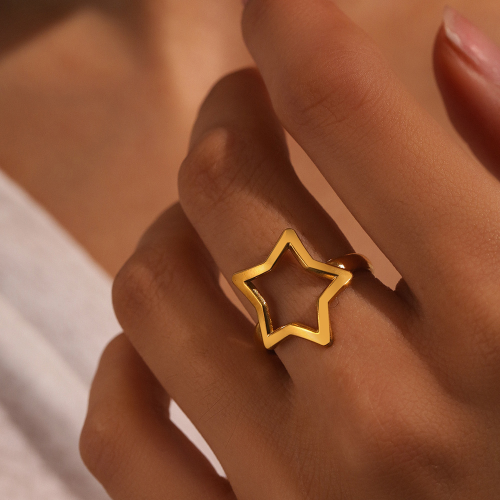 Golden Cool Style Personality Hollow Star Ring Ins Japanese and Korean-style Simple Titanium Steel Color-free Ring Jewelry Accessories