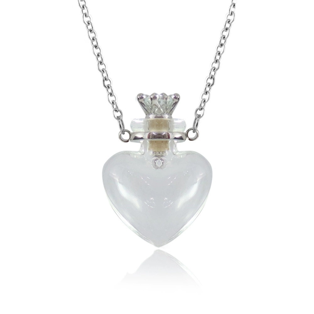 Transparent Heart-Shaped Glass Oil Bottle Necklace Fragrant Bottle Pendant Simple Titanium Steel Necklace for Friends Gift Couple