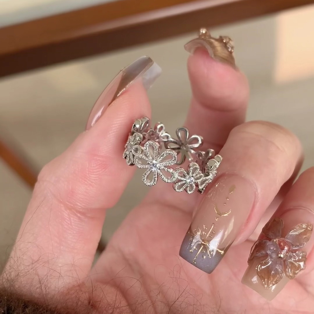Little Red Riding Book Same Style Lace Wreath Hollow Point Drill Flower Ring Exquisite High Color Value Fashion Sweet Food Finger Ring