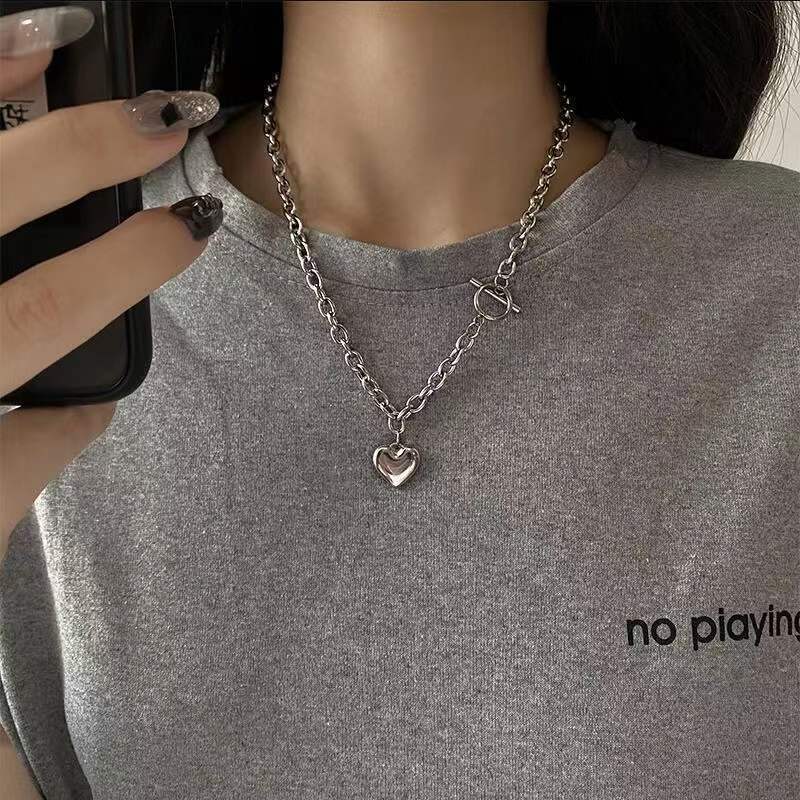 New All-match Light Luxury Love Heart Necklace Creative Simple European and American Collarbone Necklace for Men and Women Ins Style Niche Sweat Chain