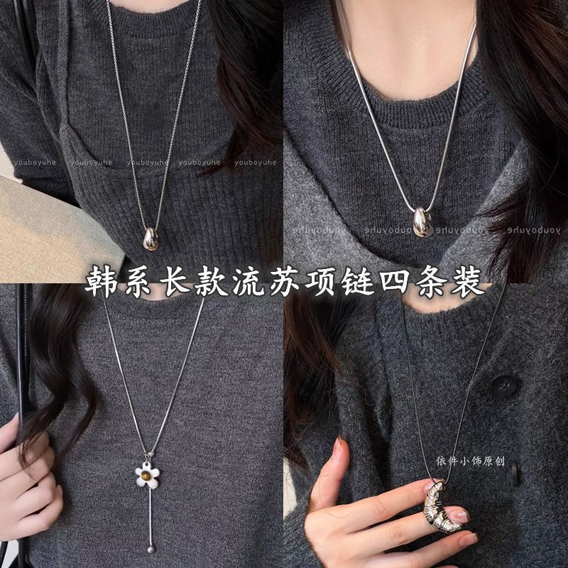 Minimalist Style Water Drop Pendant Necklace for Women Autumn and Winter Long Sweatshirt Sweater Chain Casual Versatile Accessible Luxury High-End Accessories