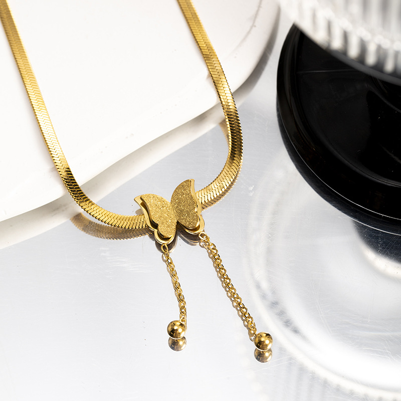 2025 Spring New Titanium Steel Non-Fading Butterfly Tassel Necklace for Women, Minimalist Style Ins Temperament Internet Celebrity Choker Collarbone Necklace