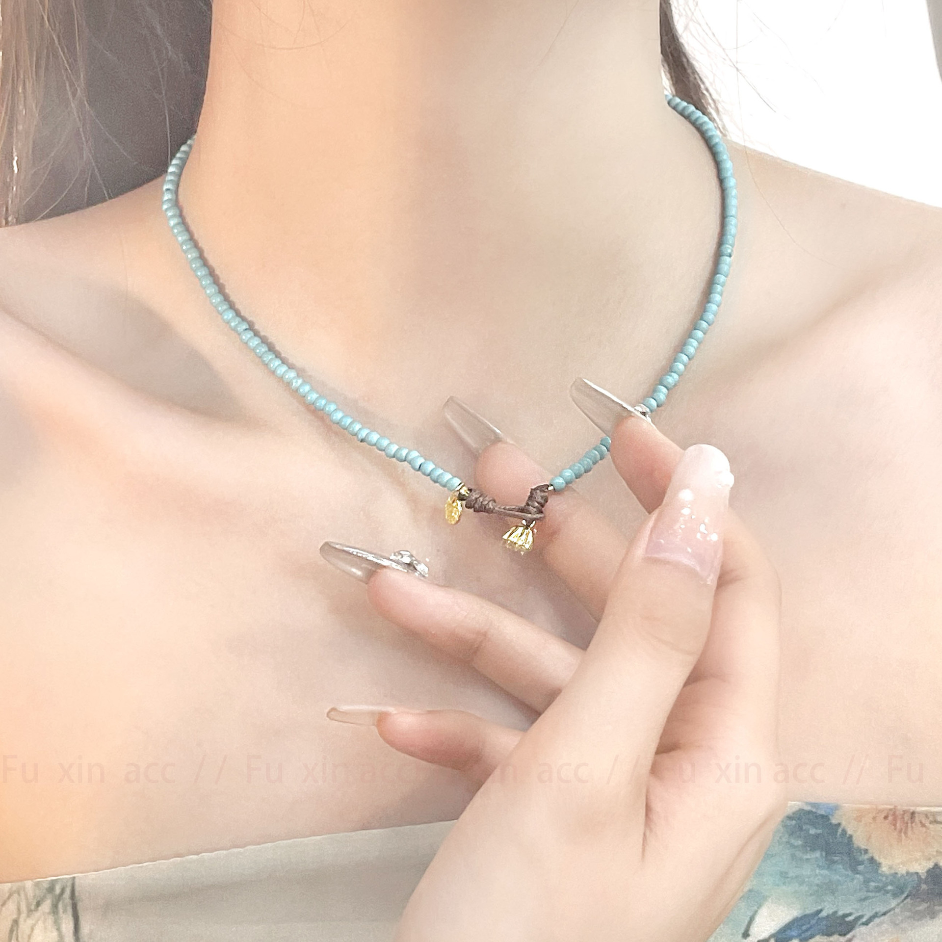 Popular New Chinese Turquoise Beaded Necklace Light Luxury Simple Design Exquisite Fashion Elegant Personality All-match Necklace