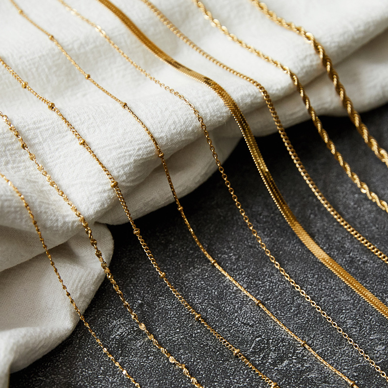 Gypsophila Petals Twist Chain Snake Bone Chain Bamboo O Chain Titanium Steel Gold Plated Bare Chain Necklace 45 50 60cm