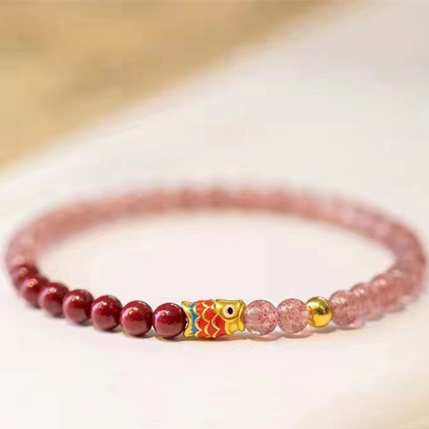 Good Luck Koi Cinnabar Purple Gold Sand Bracelet Bracelet Hook Peach Blossom Simple Strawberry Crystal Bracelet Gift 2024 New