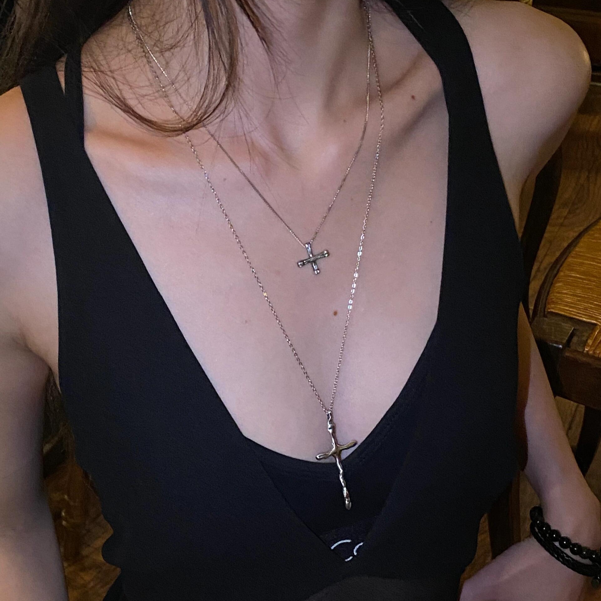 Titanium Steel Double-Layer Stacked Cross Necklace, Accessible Luxury and High-End Clavicle Chain, Fashionable and Simple Necklace Design, Niche