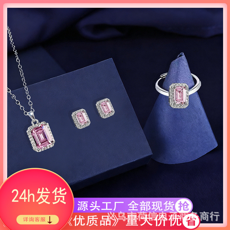 Cross-Border Popular Pink Sugar Cube Necklace for Girls, Light Luxury Cross-Border Set, Elegant, Simple, Versatile, Trendy Clavicle Chain Pendant