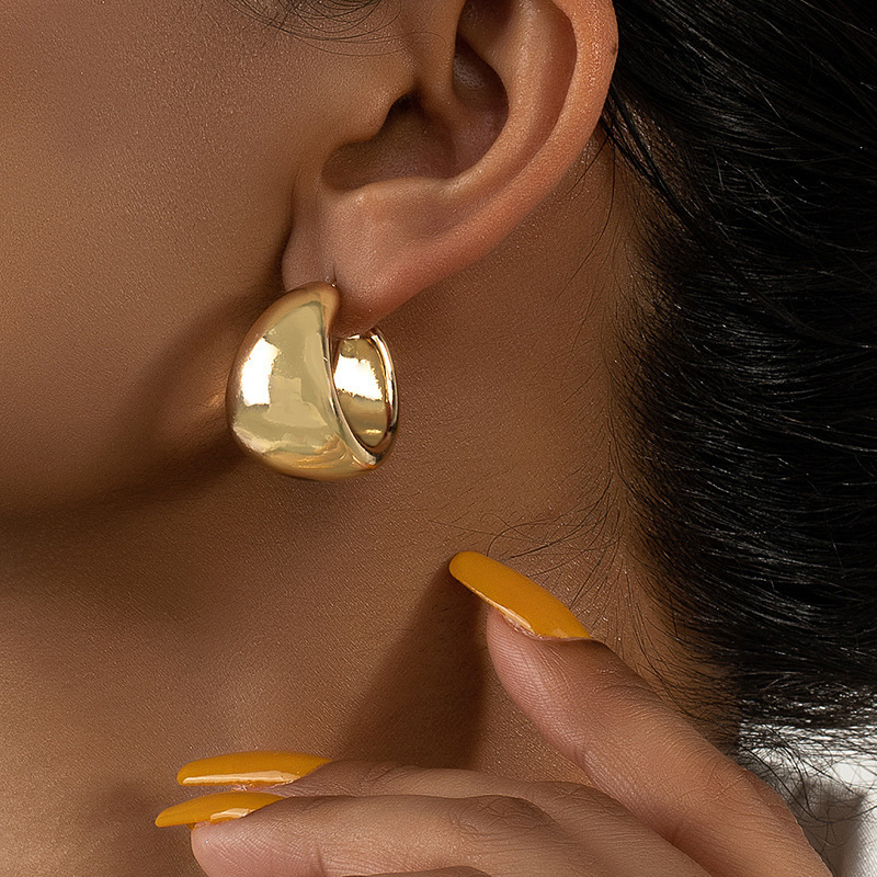 European and American Simple and Fashionable Metal Wide C-Shaped Earrings, Versatile Personalized Design Geometric Earrings Wholesale