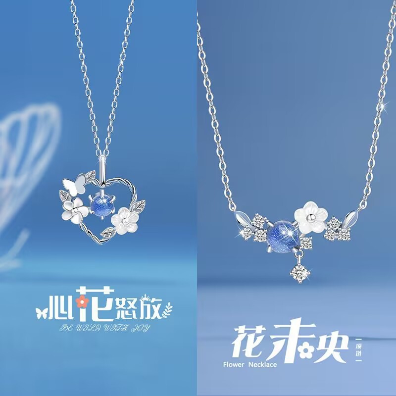 [Two girlfriends] original heart flower necklace female ins gentle fairy style student antique campus gift clavicle chain