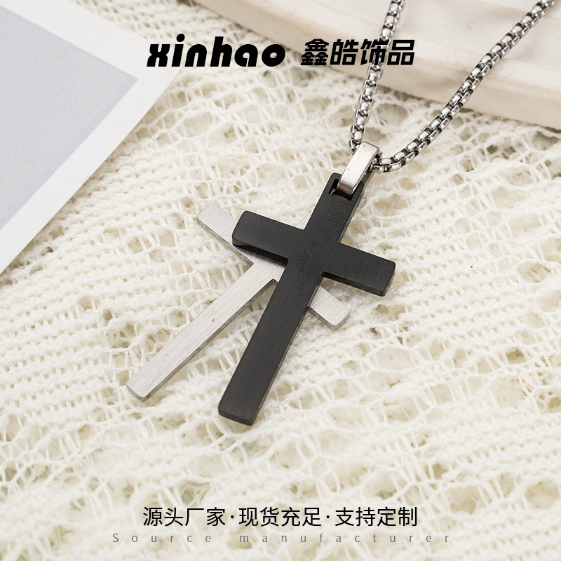 Fashionable and Simple Stainless Steel Glossy Cross Men's Cool Necklace Hip-Hop Jewelry European and American Trendy Men's Accessories