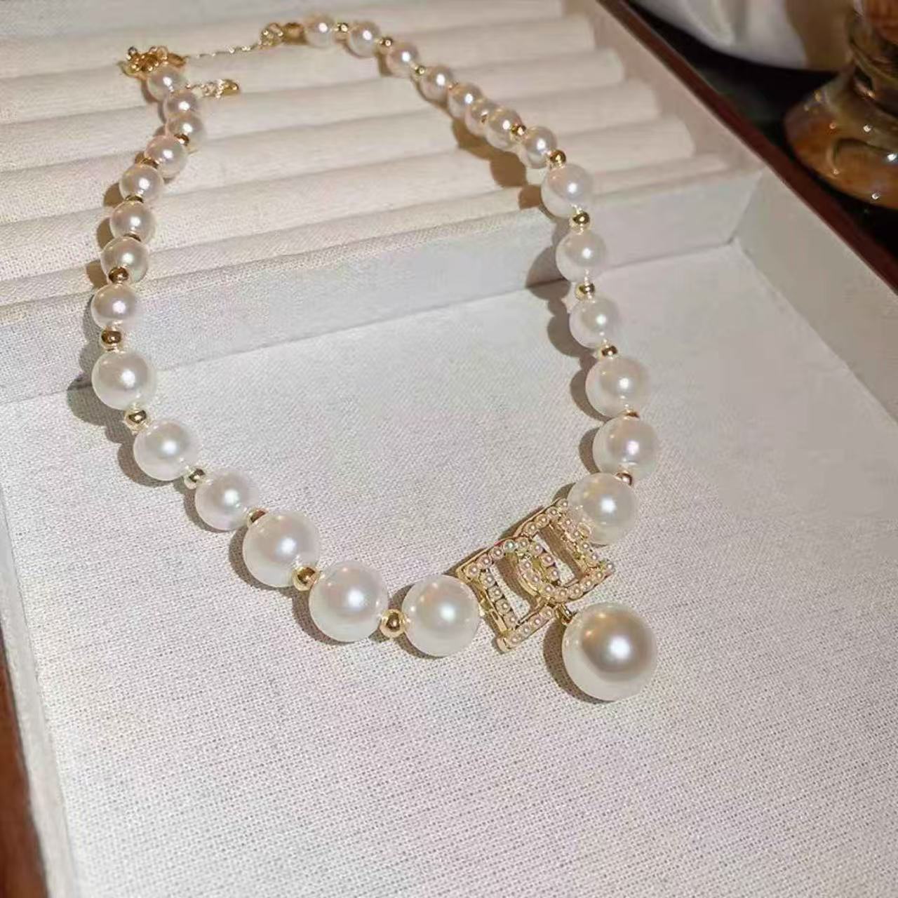 Korean Ins Style Simple Personalized Necklace with Diamonds and Pearls Spliced Short Necklace Internet Celebrity Elegant Design Necklace