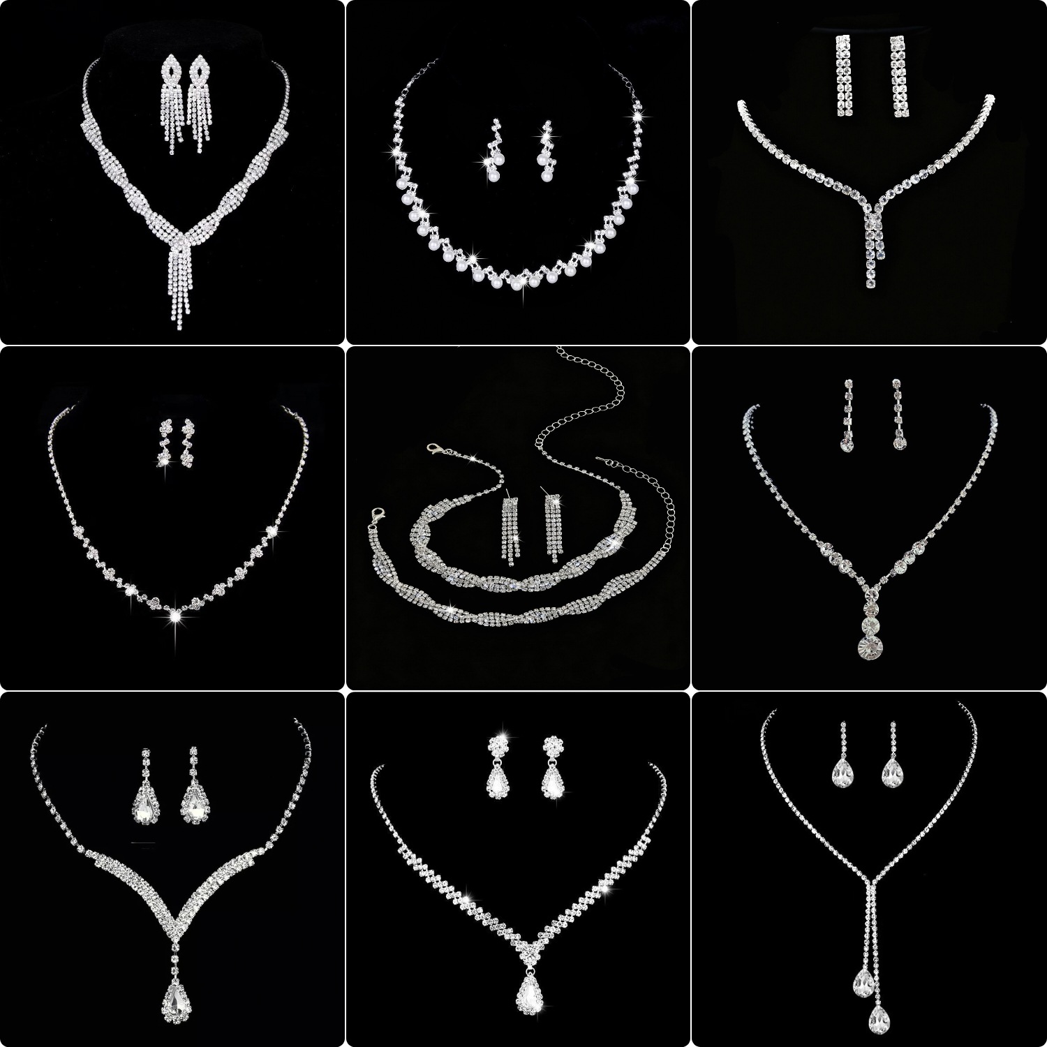 Cross-Border Popular Bridal Necklace and Earrings Jewelry, European and American Fashion, High-End Versatile Clavicle Chain, Simple Rhinestone Jewelry