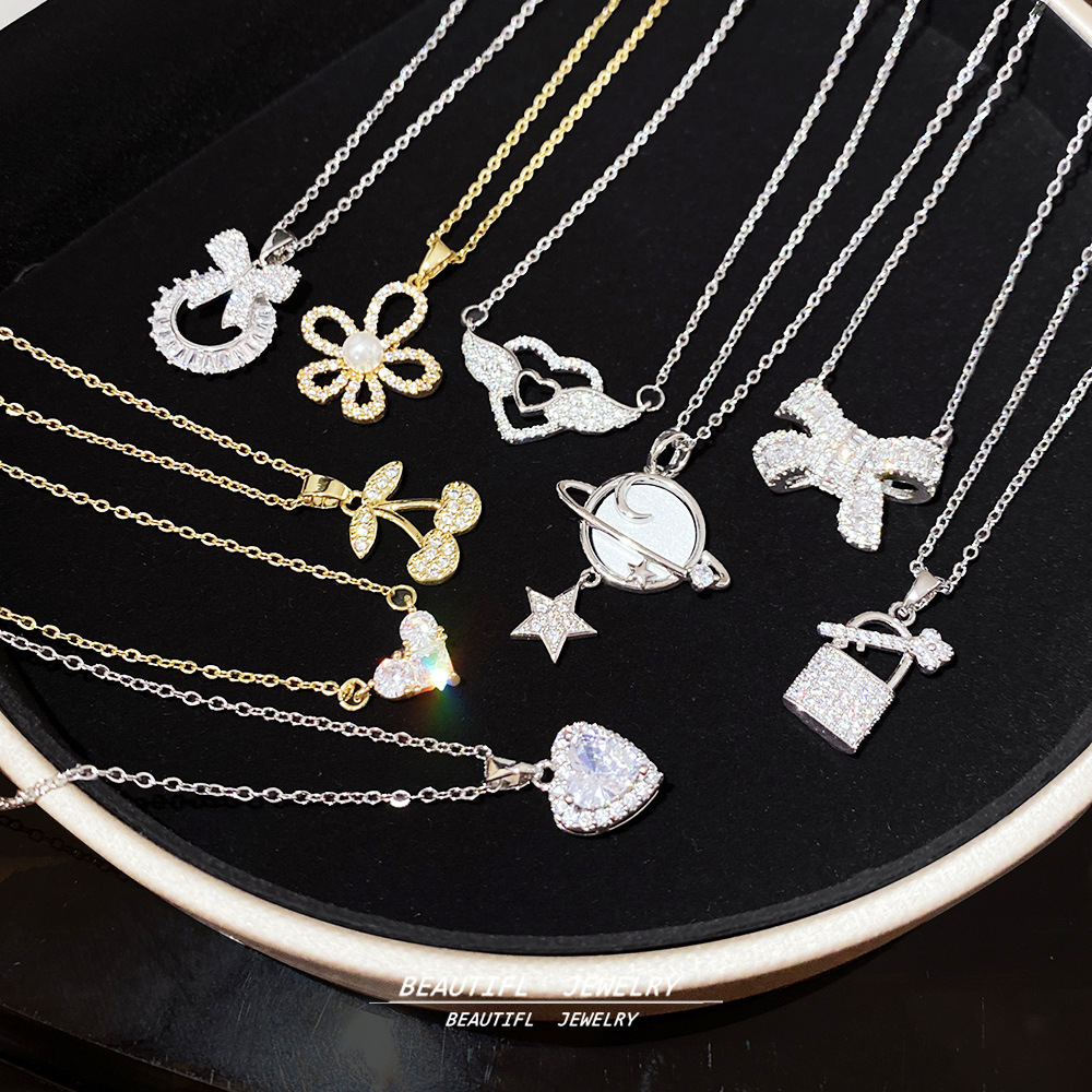Fashionable light luxury titanium steel necklace women's simple all-match exquisite zircon pendant Internet celebrity clavicle chain niche high-end jewelry