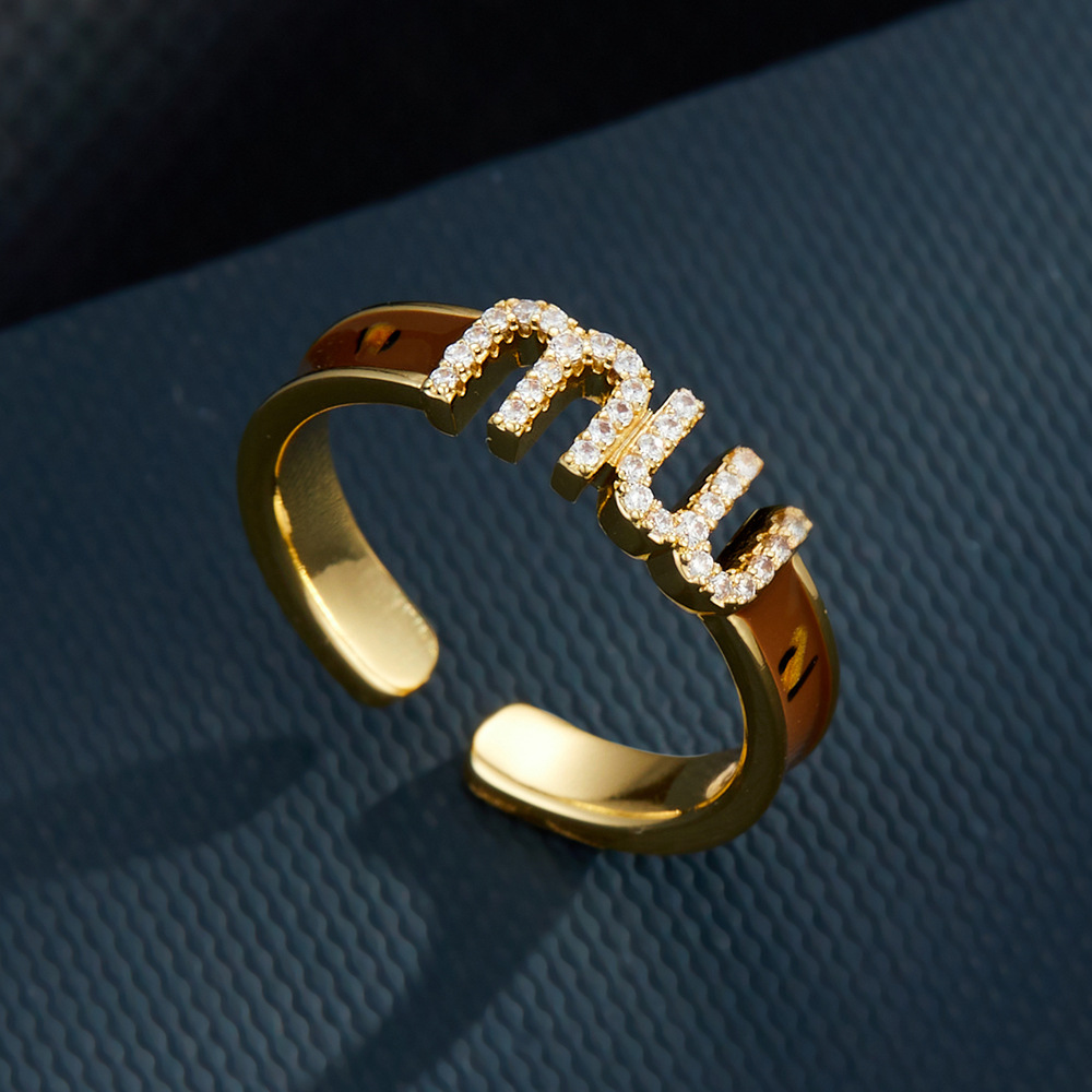 Fashion Simple Letter Oil Dropping Opening Ring Light Luxury High-end Sense Micro-inlaid Zircon Finger Ring New Exquisite Ring