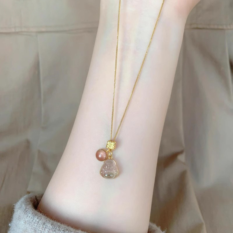 Cool and Icy Buddha Pendant Necklace for Women, Fashionable and Versatile, Niche Style, Sweet and Elegant Clavicle Necklace