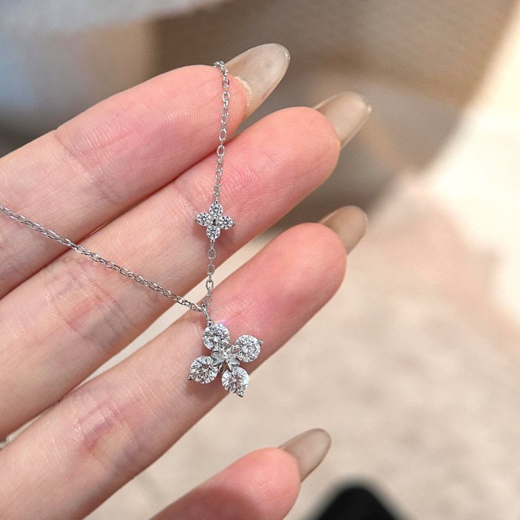 Lucky Four-leaf Clover Necklace Women's Simple High-end Sense Exquisite Light Luxury All-match Flash Zircon Flower Pendant Clavicle Chain