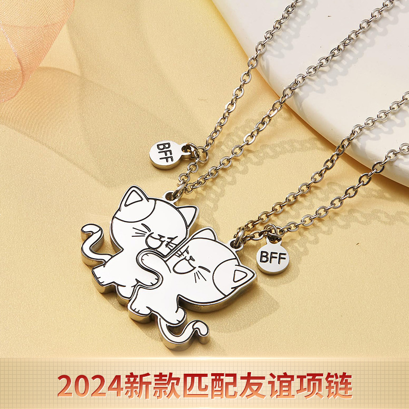 Foreign Trade Amazon 2024 New Matching Friendship Necklace Female Fashion Best Friends Matching Necklace Birthday Gift