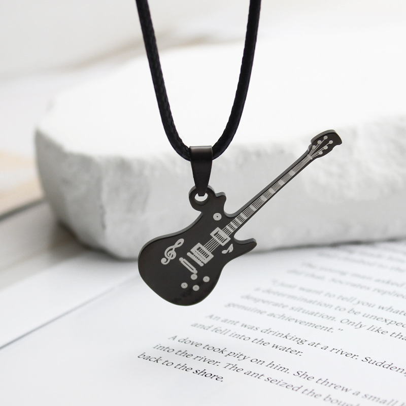 New Fashion Stainless Steel Guitar Necklace Simple Trendy Hip-Hop Music Cross-Border Hot Sale