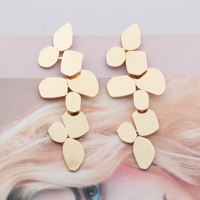 High-end exaggerated fashionable simple irregular metal leaf earrings niche design cold style earrings for women