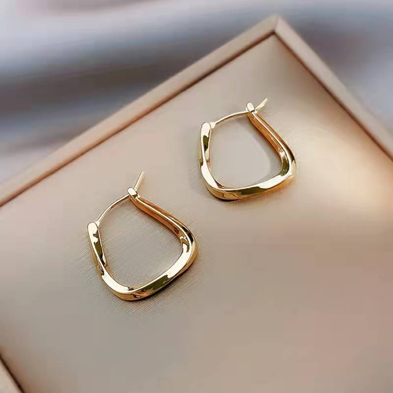 Niche high-end feeling brushed metal ear buckle women's simple fashion personality commuter trend all-match earrings earrings