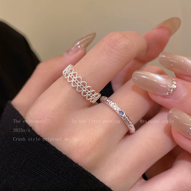 Minimalist Hollow Lace Open Ring for Women, Unique Design, Stackable Index Finger Ring, Adjustable Personalized Ring