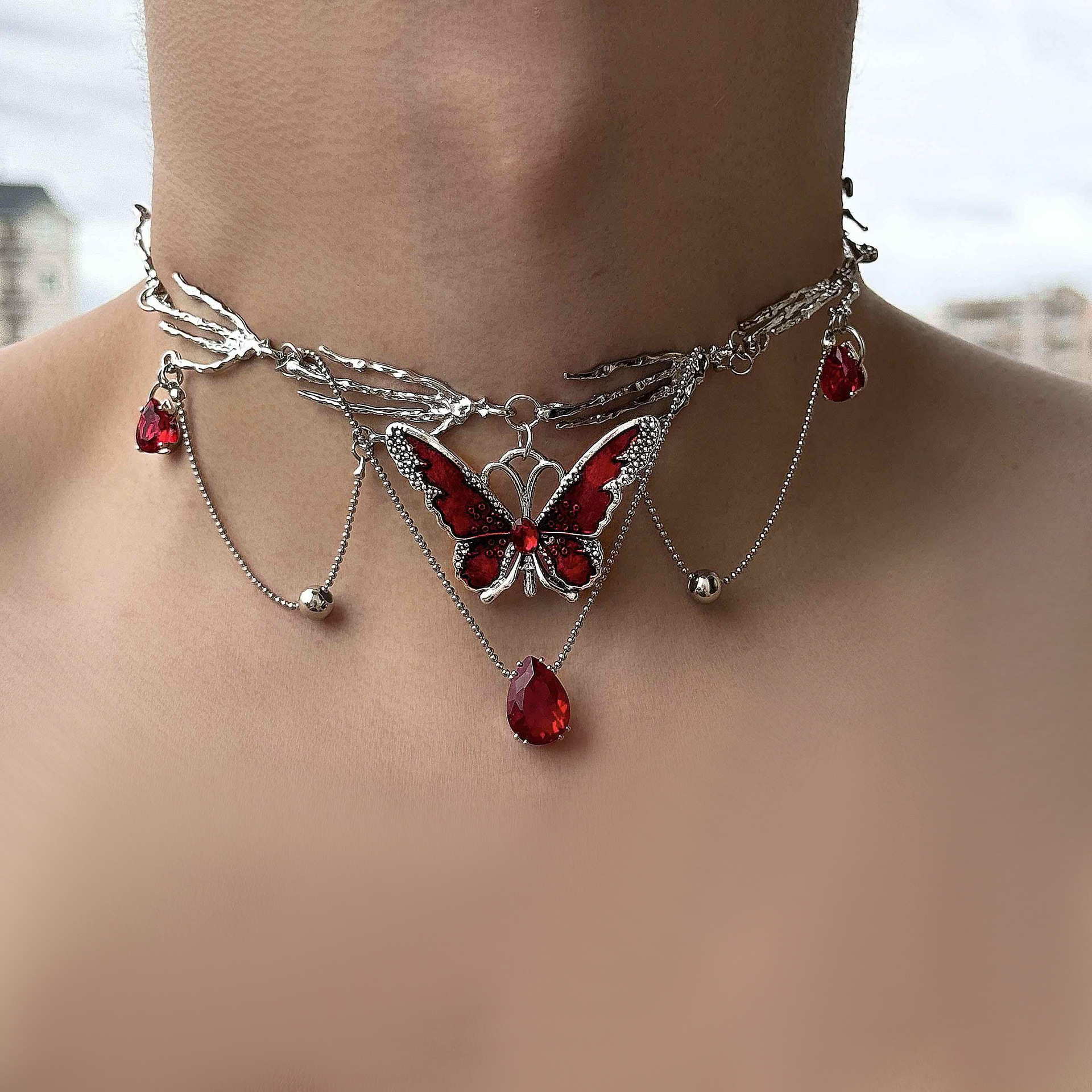 Girl villain! Sweet Cool Spice Girl Personality Exaggerated Butterfly Tassel Necklace Niche High-class Choker Clavicle Chain