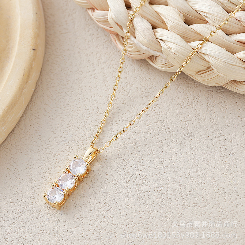 Exquisite zircon necklace jewelry female temperament simple niche three diamond clavicle chain factory direct cross-border supply