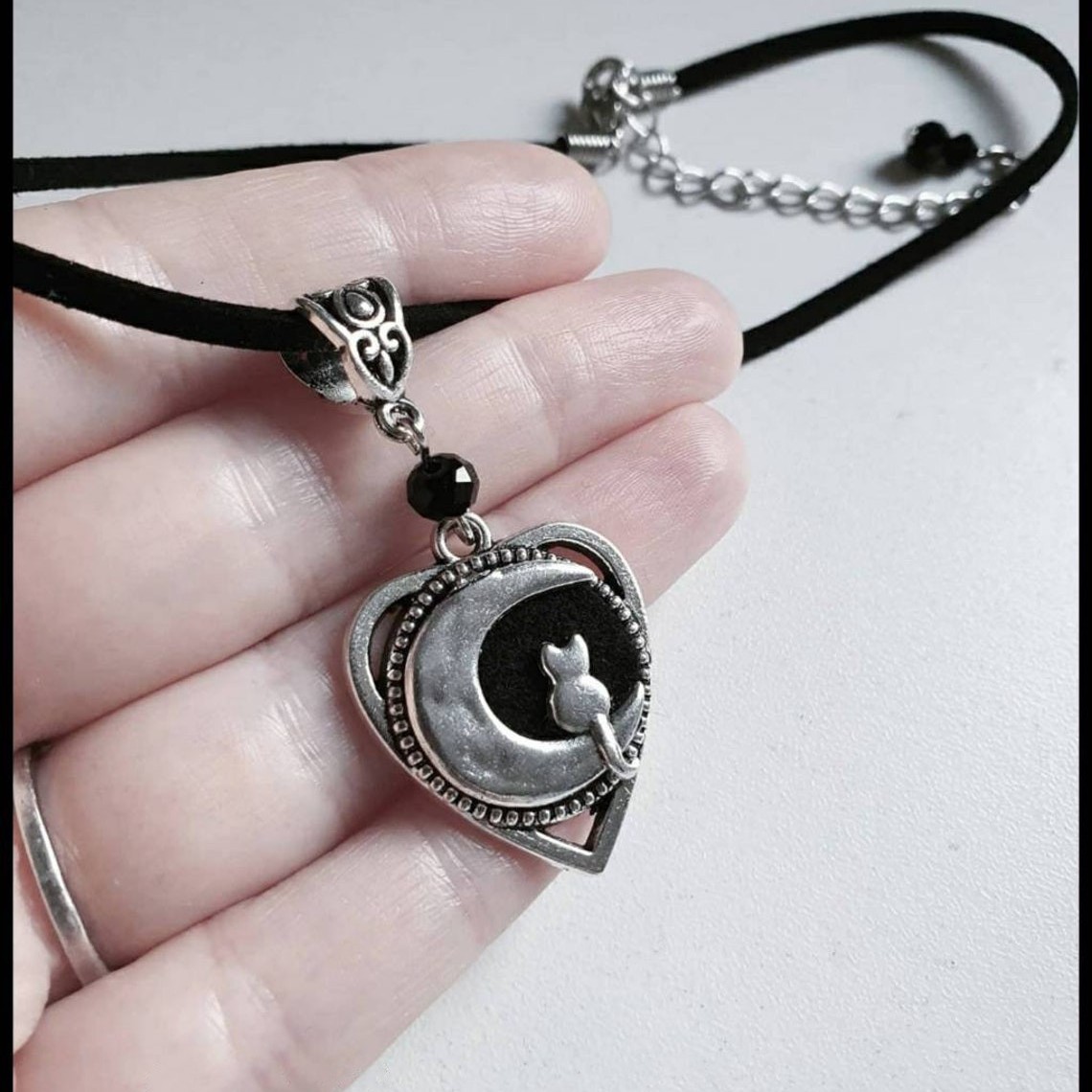 Cross-Border Foreign Trade Hot-Selling Gothic Heart-Shaped Style Cat and Moon Necklace Factory Direct Sales