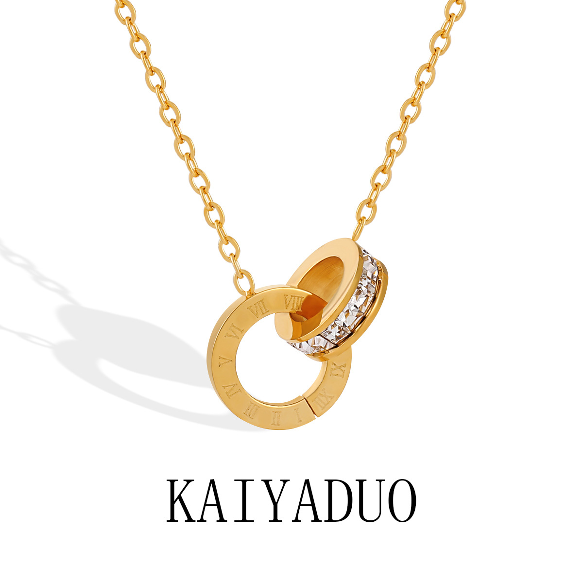 Korean style personalized new light luxury Roman digital double ring necklace women's fashion simple gold-plated titanium steel clavicle chain