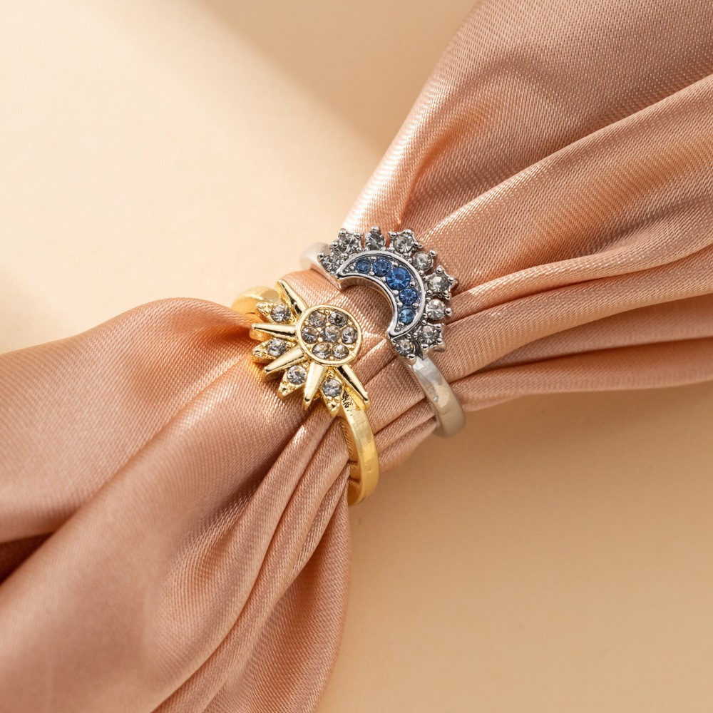 European and American Cross-border Fashion New Creative Diamond Ring Two-piece Simple All-match Sun Moon Street Ring