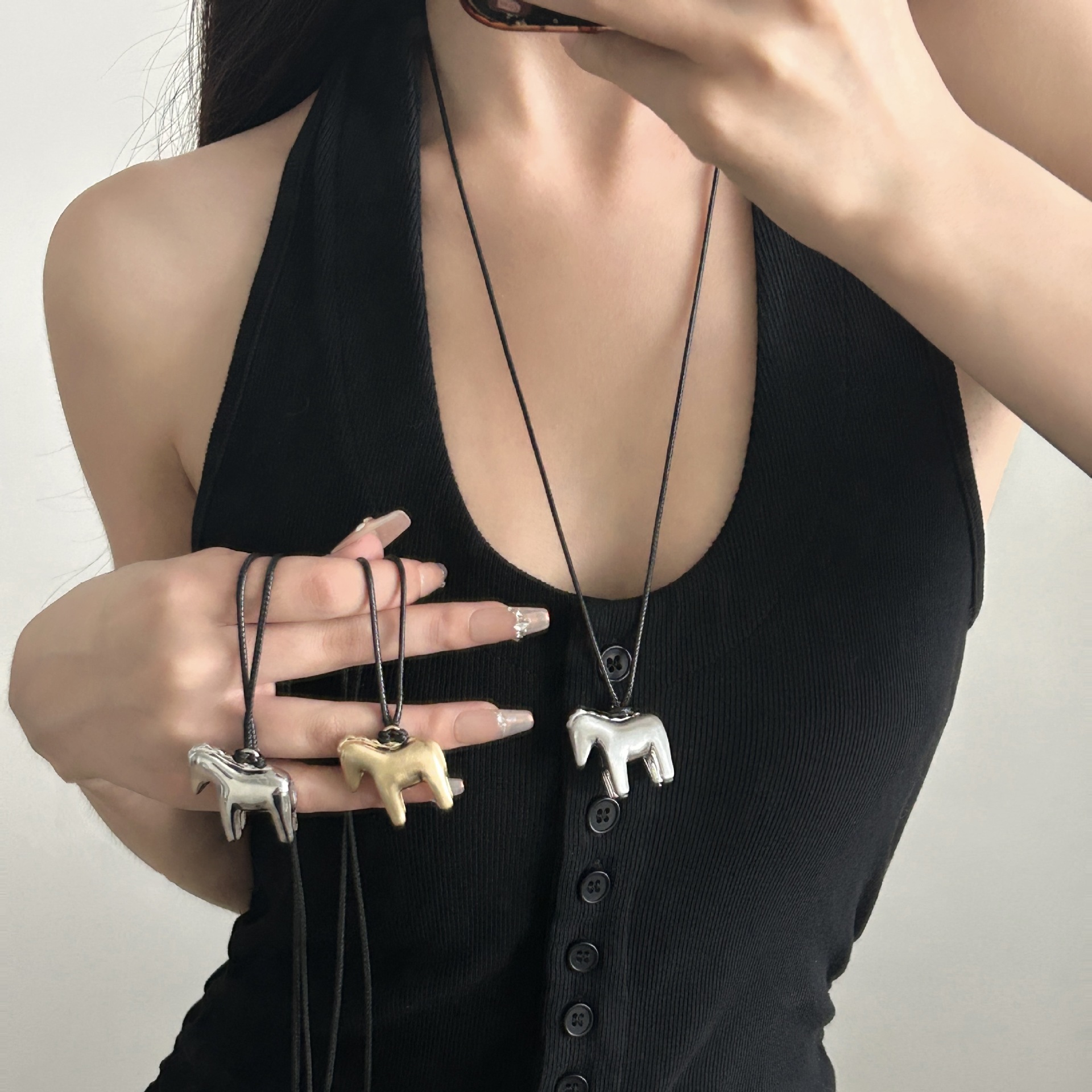 2025 New Style Pony Pull Leather Rope Pendant High-End Long Necklace Women's Simple Stylish Versatile Sweater Chain