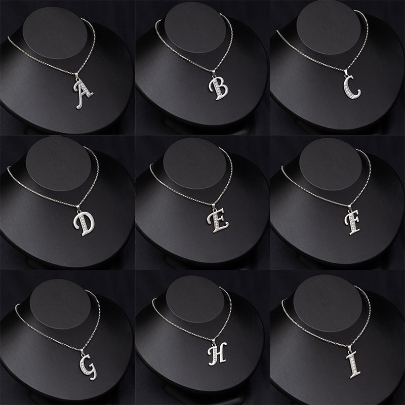 Cross-Border Export Simple and Fashionable 26 English Letters Titanium Steel Necklace for Men and Women Hip-Hop Versatile Diamond Sweater Chain