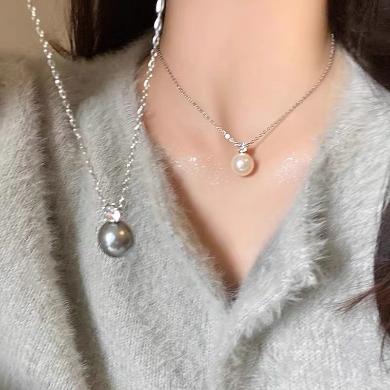 Pearl Zircon Pendant Necklace Women's Ins Simple Cold Style Niche High-end Style Clavicle Chain Fashion Western Style Jewelry