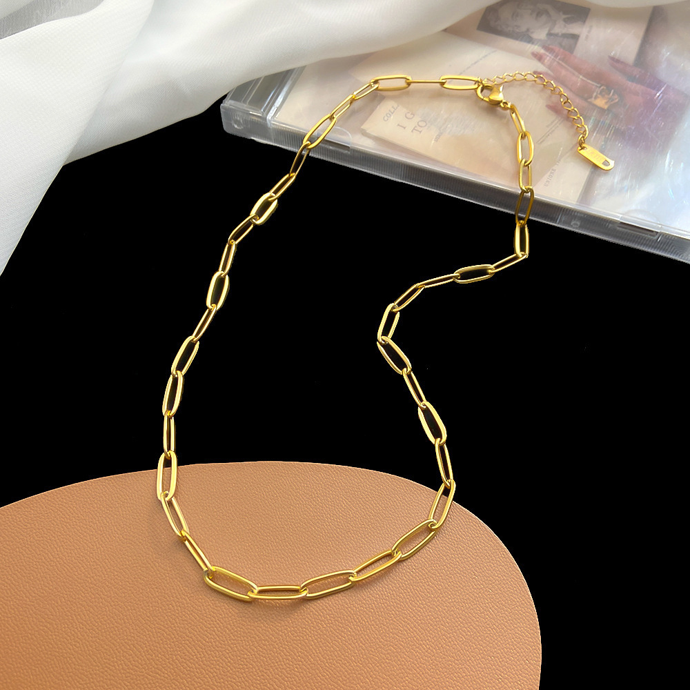 Hip-Hop Titanium Steel Light Luxury Necklace Bracelet Men's and Women's Short Clavicle Chain Simple Cold Style Internet Celebrity Design Advanced Sense