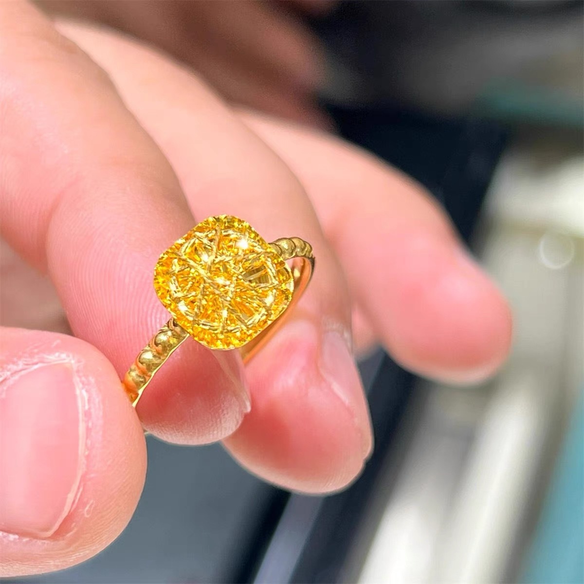 New Flash Brushed Small Square Sugar Ring for Women Niche Design Simple Ring High-end Hollow Light Luxury Trendy Jewelry