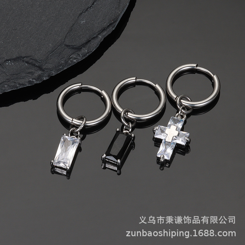 Zircon cross earless earrings trendy online celebrity gender-free men and women couple square diamond earrings titanium steel earrings