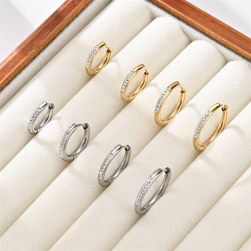 Cross-border European and American high-grade earrings stainless steel a row of drill round wire open earrings 18k gold zircon geometric wholesale