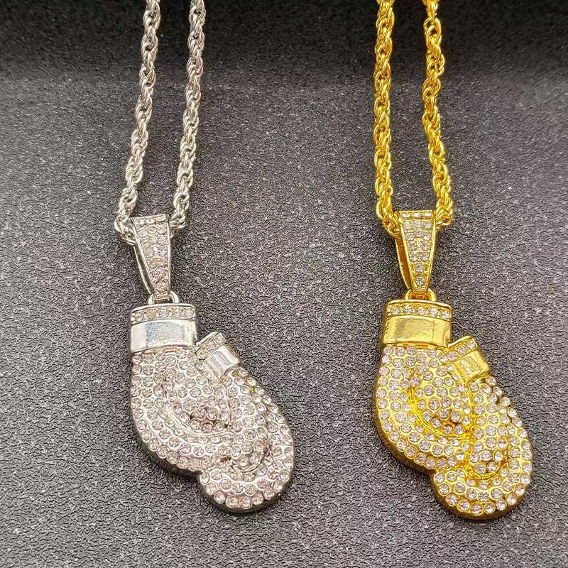 Factory Direct Sales Fashionable Diamond Boxing Gloves Pendant Men's Hip-Hop Style Necklace Party Party Batch