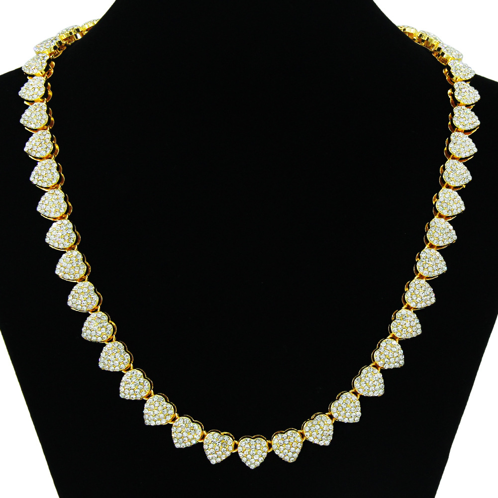 European and American Hip-Hop Full-Diamond Stereo Peach Heart Splicing Necklace, Personalized Men's and Women's Trendy Hip-Hop Cool Cuban Chain