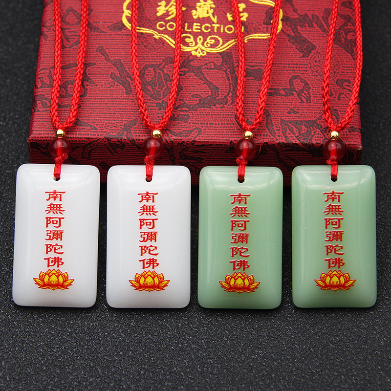 Green Jade White Jade Nothing Card Hot Stamping Namo Amitabha Crystal Pendant Men's and Women's Necklace Temple Gifts