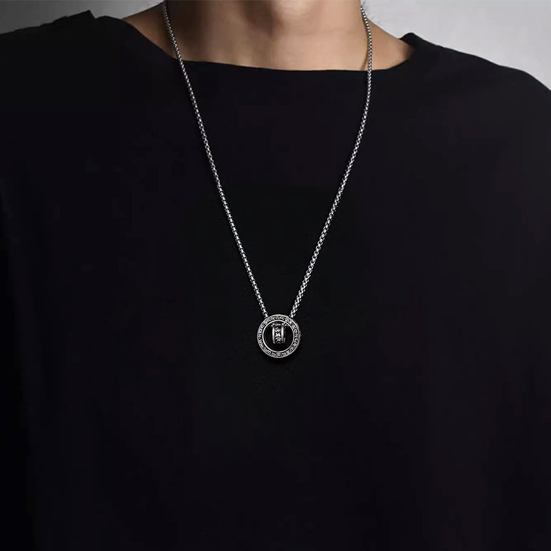 Literary and artistic style six-character mana double-ring fortune-making titanium steel necklace men's trendy fashion all-match men's sweater chain