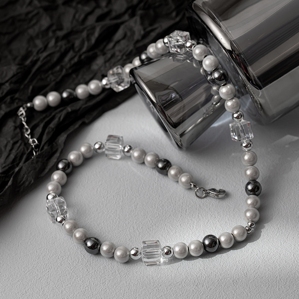 No gender sweet cool style crystal hip hop beaded necklace for men ins personality titanium steel non-fading clavicle chain for women Wholesale