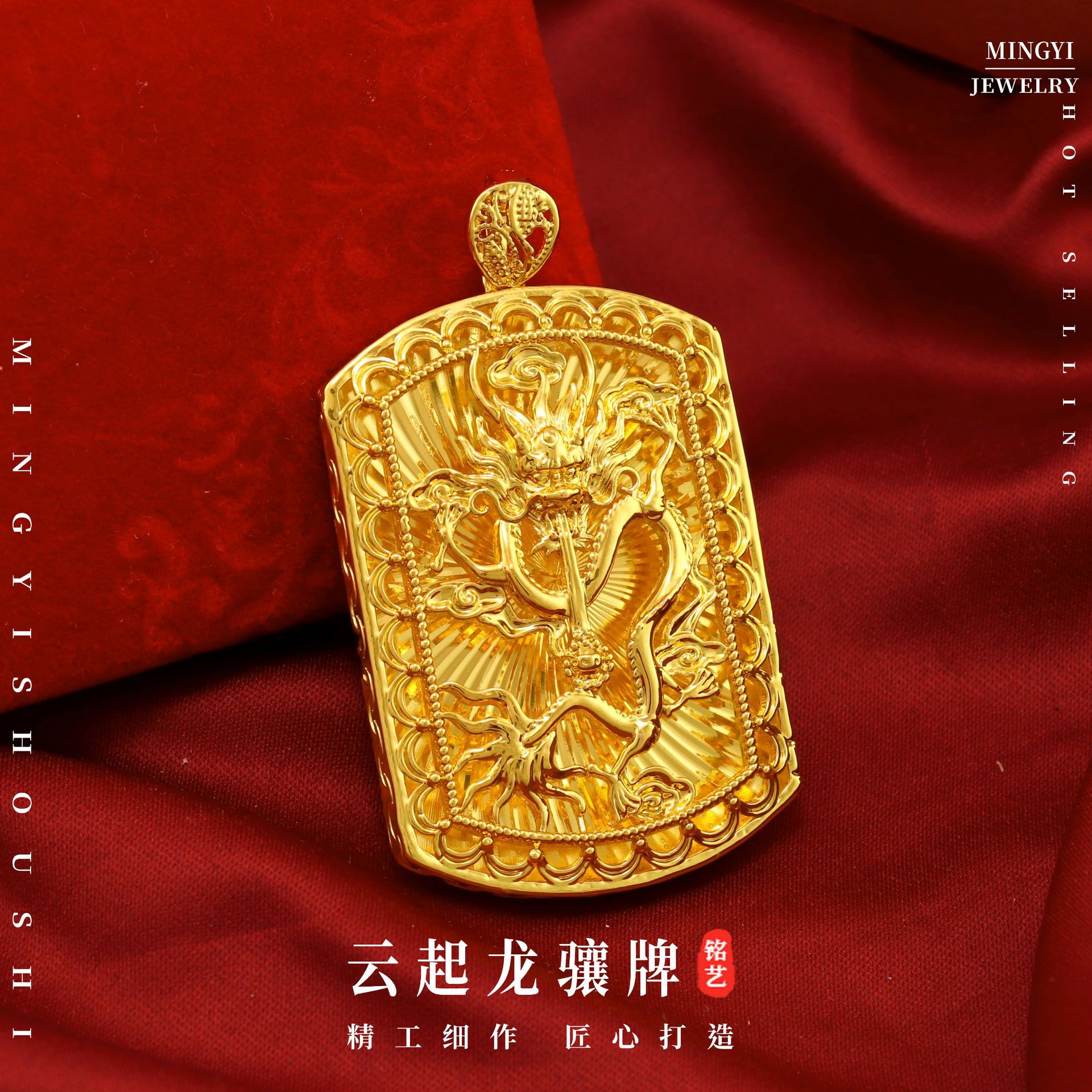 Chinese Style Sand Gold Glossy Dragon Brand Pendant Men's Pendant Retro Brass Gold-Plated Necklace Fortune Brand Pendant Wholesale