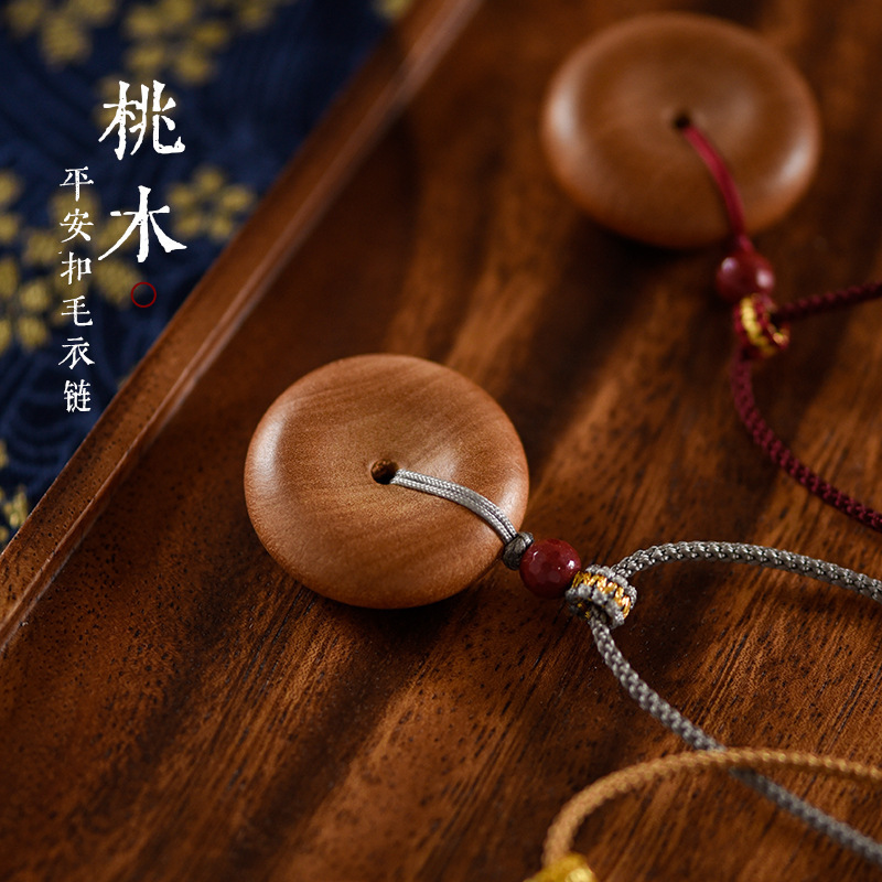 Designer recommend Old Peach Wooden Buckle Necklace Children Cinnabar Female Male Xiangyun Couple Rope Spring and Summer Necklace New Year