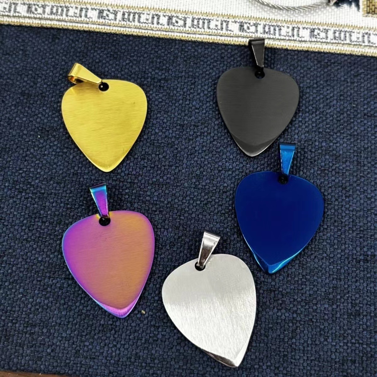 New Stainless Steel Guitar Picks in 5 Colors, Titanium Steel Men's and Women's Pendants, Can Be Paired with Chains, Hip-Hop Style Necklaces